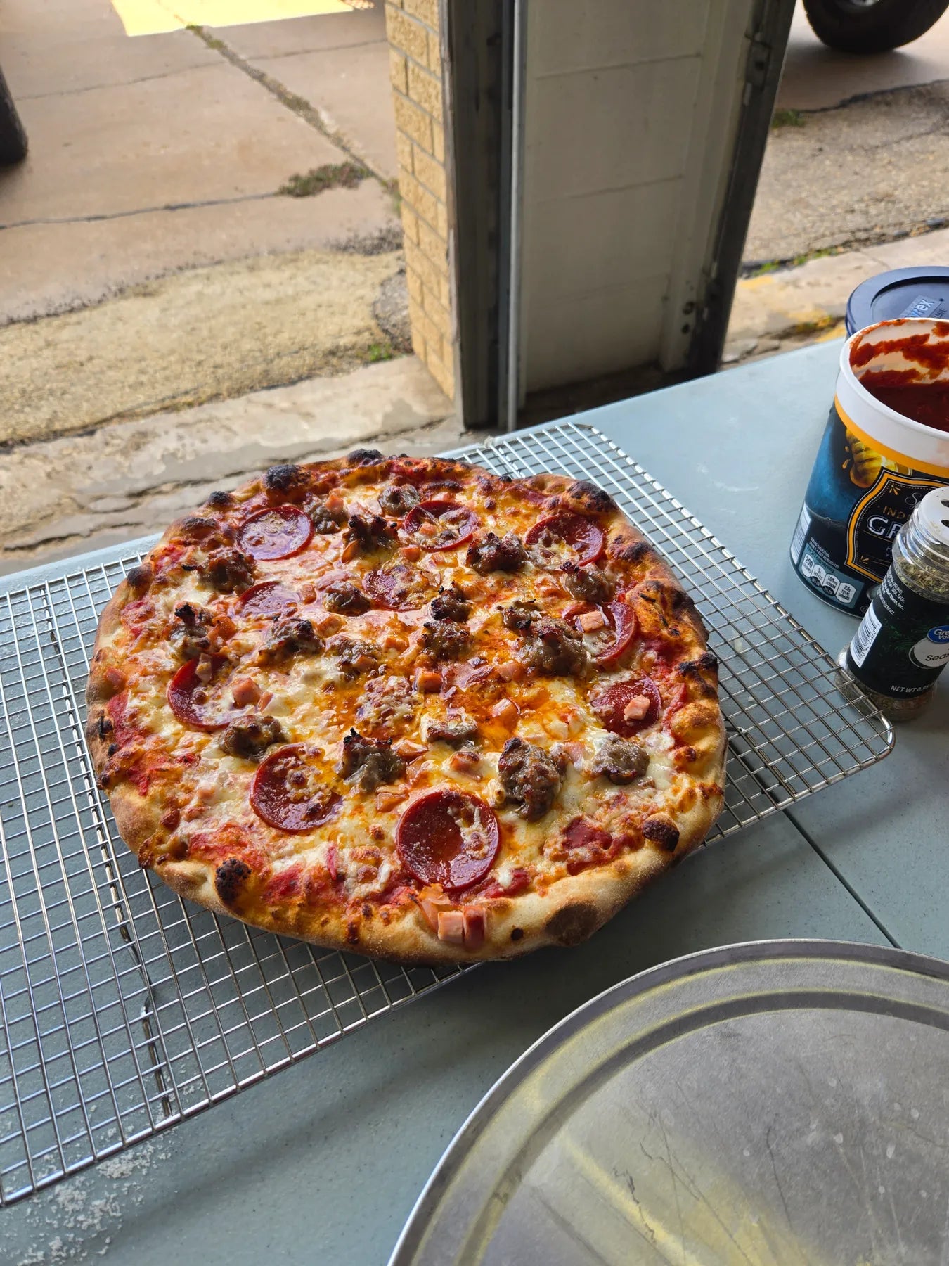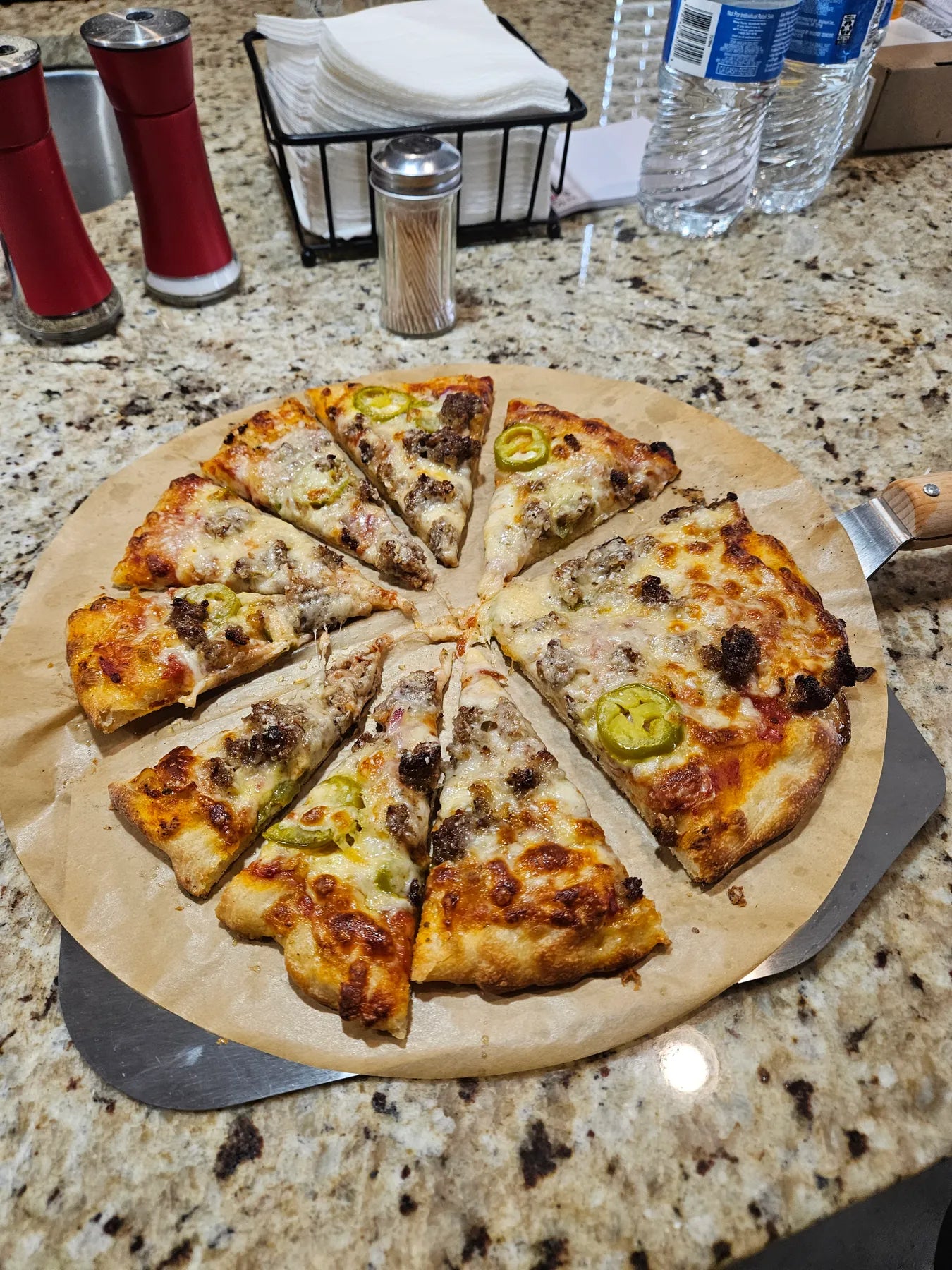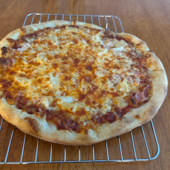 Hand stretch or toss the dough for a 12” or a thin crust 14” pizza.